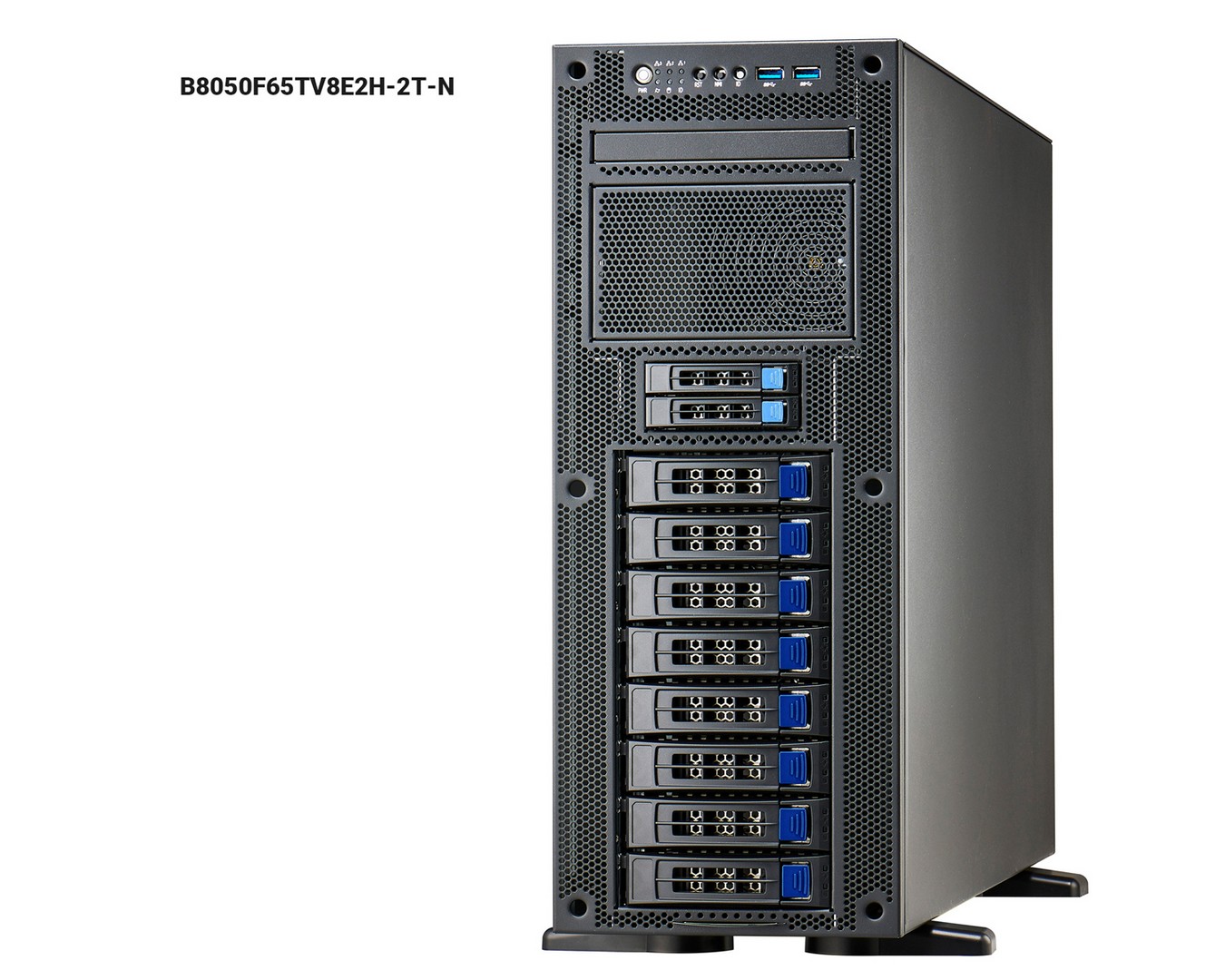 8 3.5" SATA + 2 NVMe U.2 hot swap, tool less drive bays